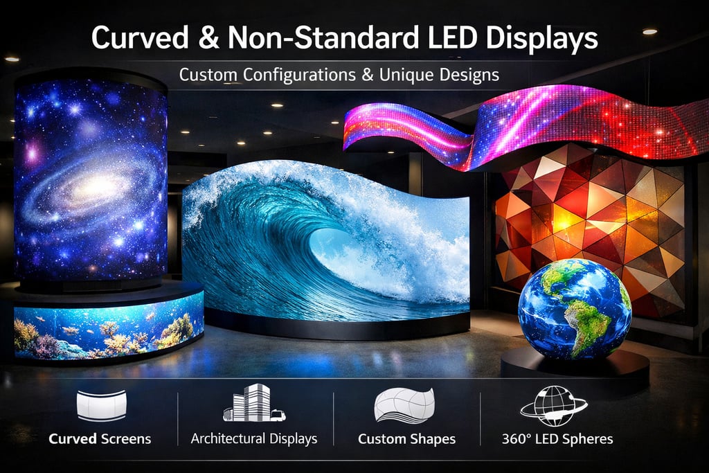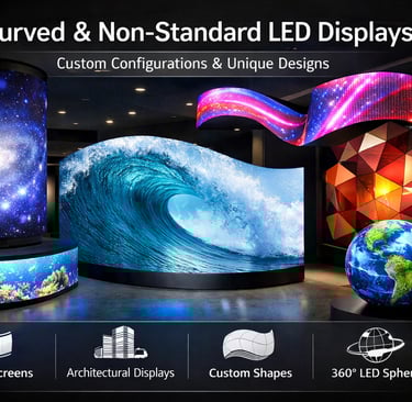 Curved and Non-Standard LED Displays are custom-configured based on architectural and creative requirements, including: