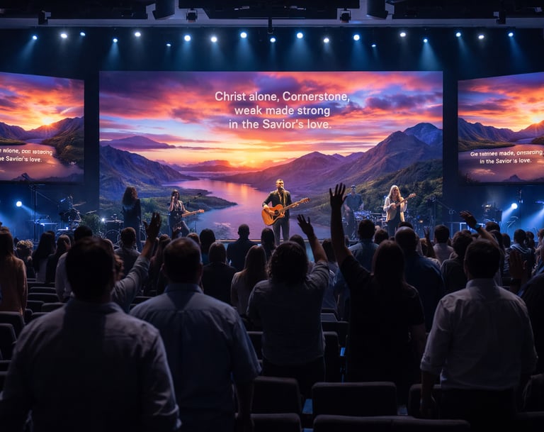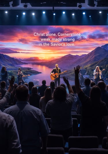 Indoor LED systems optimized for large gathering spaces, delivering readable content, immersive visuals, and scalable layouts for sanctuaries and auditoriums.