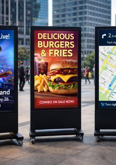 Self-contained or semi-permanent LED display systems designed for mobility, rapid setup, and relocation across multiple sites or events.
