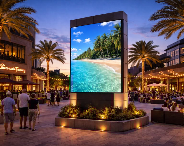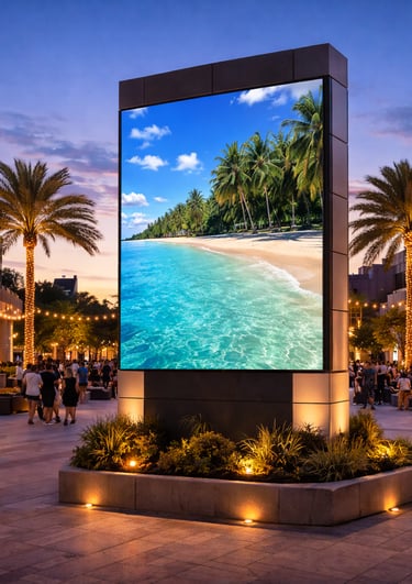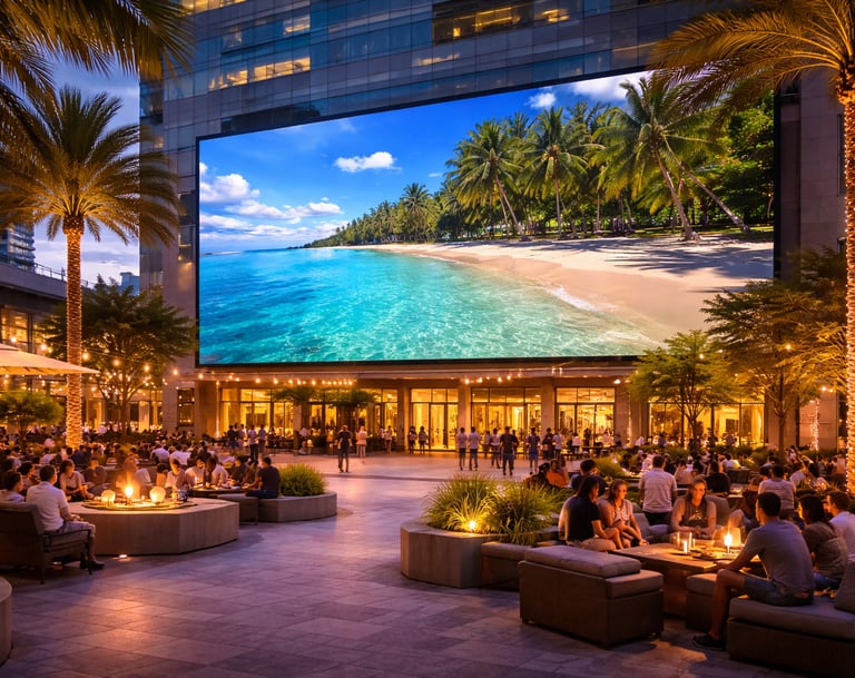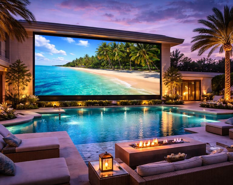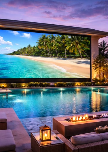 Weather-rated LED displays designed for residential estates, pool areas, patios, and private entertainment spaces. Engineered for daylight visibility, humidity resistance, and long-term outdoor operation in upscale residential environments.